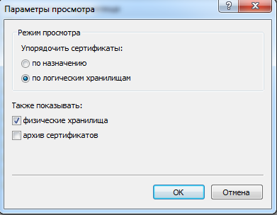 - В окне «Параметры просмотра» выбрать опцию «физические хранилища» и нажать «ОК».