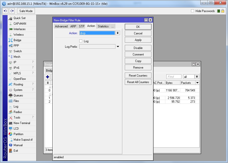 Рис.1. Создаем запрещающее правило в Mikrotik routerboard.